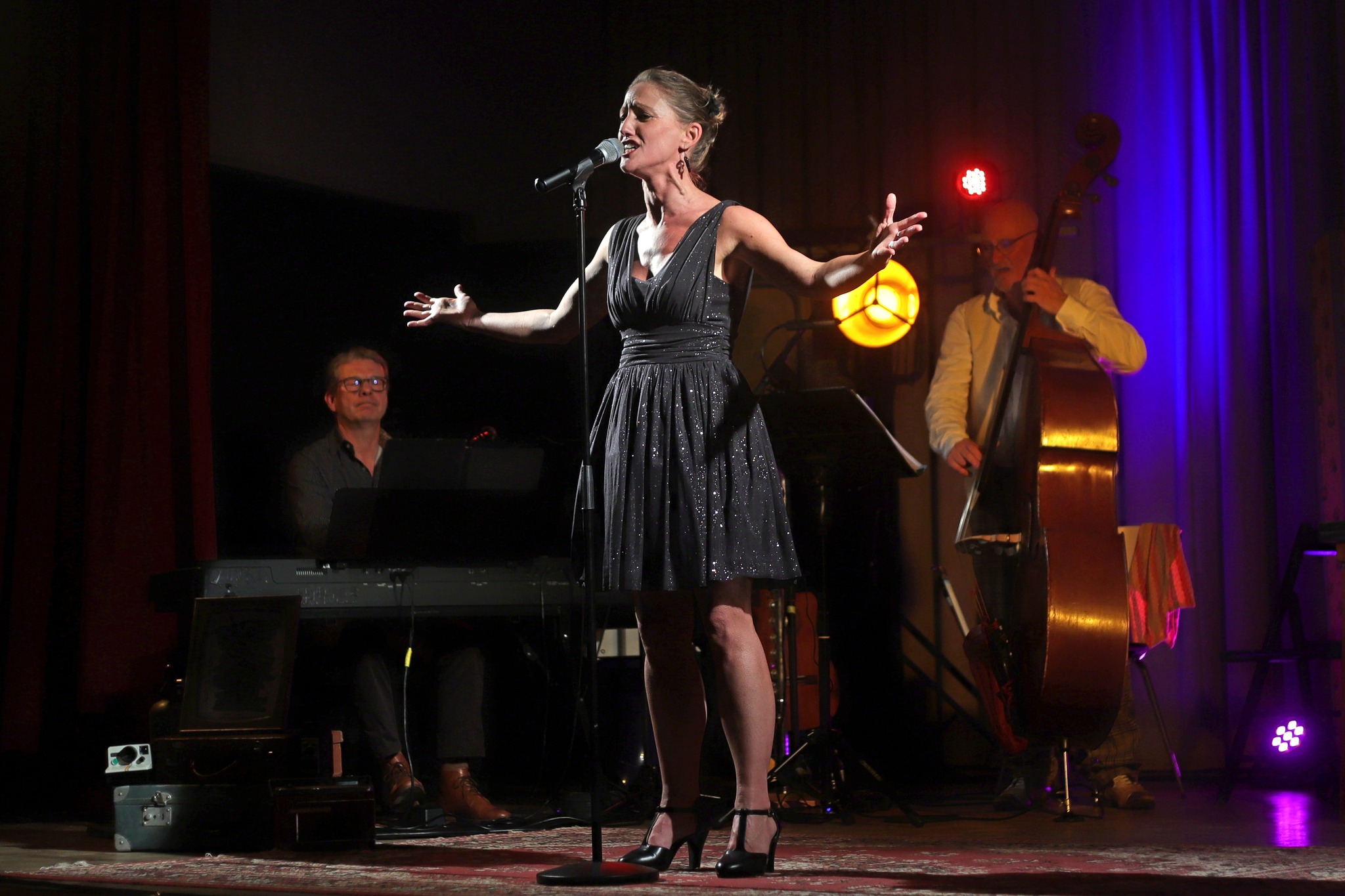 Le vaste répertoire de la chanson française fournit les éléments nécessaires à ce portrait d’une femme aux visages multiples. L’on peut croiser au détour du spectacle les amoureuses et les nostalgiques, les séductrices ou les soumises, les câlines ou les frustrées.